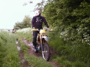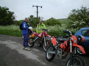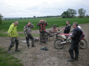So our first ‘official’ Club Dirty Bastards trail ride for 2008 has taken place. Things have been a bit slow getting off the ground this year for a number of reasons, racing and enduroland being two of them. I have been out for a few runs already, one on my own, one with Zulu and another with Tony that had to be aborted. I’d stripped out the fender bag on the KTM for the cancelled CHEC race the week before and had forgotten to repack the tyre levers. Tony asked me if I had them as we were gearing up and I had to inform him that they were sitting in my ‘box of bits’ in the garage at home! We’ve not had a puncture for ages so thought it would be ok, but as fate would have it Tony got a puncture. I carried on having a bit of a play while he limped back to the car via the roads. I was not too popular I must admit and the first thing I got back via sms when I suggested this run was “can I book the tyre levers please”. Our meeting spot..... rob discuses the merits of steam power.......the group (check out the man in yellow) I’d hatched the idea of a long trail ride