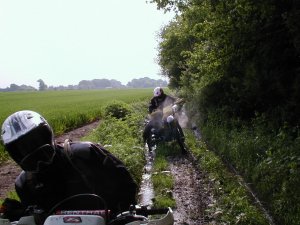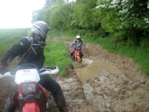 Jumping back on the open section of the Ridgeway it was very tempting to use it all the way back but I resisted the temptation. The boggy bit at the end of Sugar Hill (just before the M4) caught out a few guys who forgot to get out of the ruts but they all made it though with some heavy throttle action. Ben completely 'filled in' Zulu with roost though!