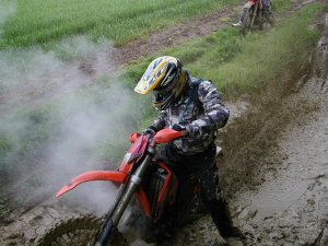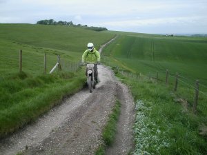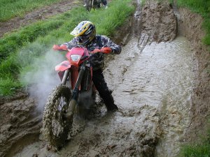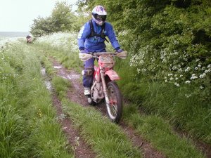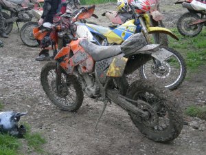 Zulu and the 525 made it through again - a great photo for a old 2mp camera! After that it was another quick run though the gates on the other side of the M4 over the Gallops and the lanes by Lambourn as we retraced our steps form the morning. We stopped for a quick breather near the Bomb hole and I looked across at Zulu. His helmet was covered in thick mud, "you not been off again" I asked? Well yes he did tip off in a unbalanced minor spill but when he went to pick up the bike he lost his footing and planted face first into the mud! I'm not sure but i think that was spill number five? We got back to the cars a little later than I intended (8pm) but that made it a full 12hr trail ride, almost 200 miles on the clock. Judging by the emails i've received everyone enjoyed the day. I'm now in the early stages of planning an even bigger/longer one! ****************************** One week later: Just been informed that Rob's thumb is broken! He's got to see a specialist next week. Hope it all works out sooner rather than later mate. Get well soon. And here's another of me stuck curtacy of the other group (xbakerbob)